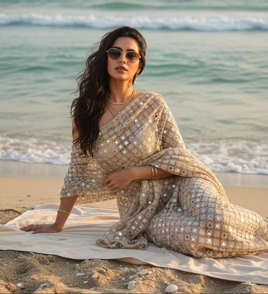 Elevate Your Style with Real Mirror Sheesh Dupatta & Sarees.