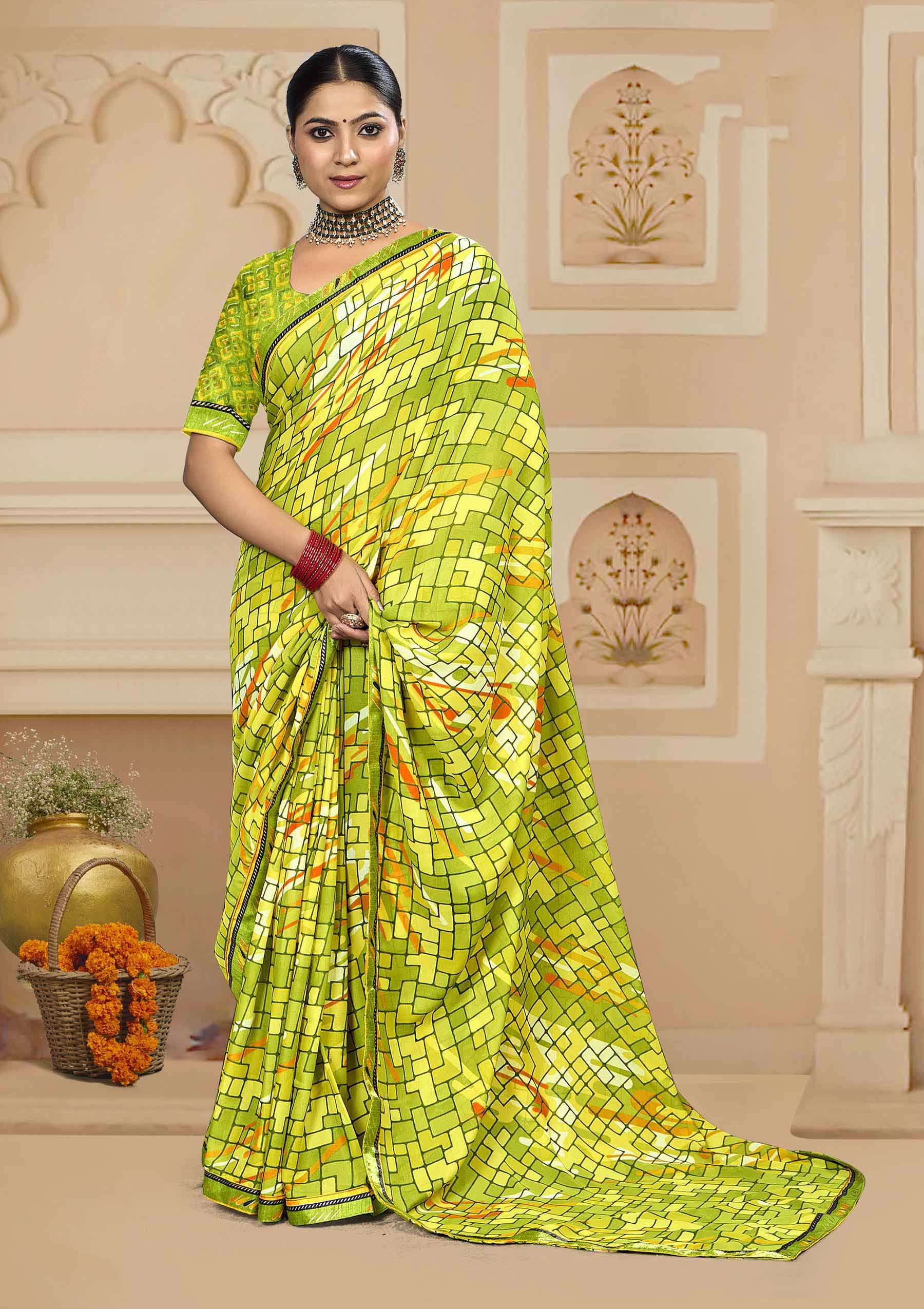 Pista Green color printed saree curated exclusively for celebrating Indian festivals and colors, ideal for daily wear. Follow color therapy as per days of week. Abstract mix design make this saree look elegant and trendy. Wear for all your auspicious occasions, ideal for gifting.