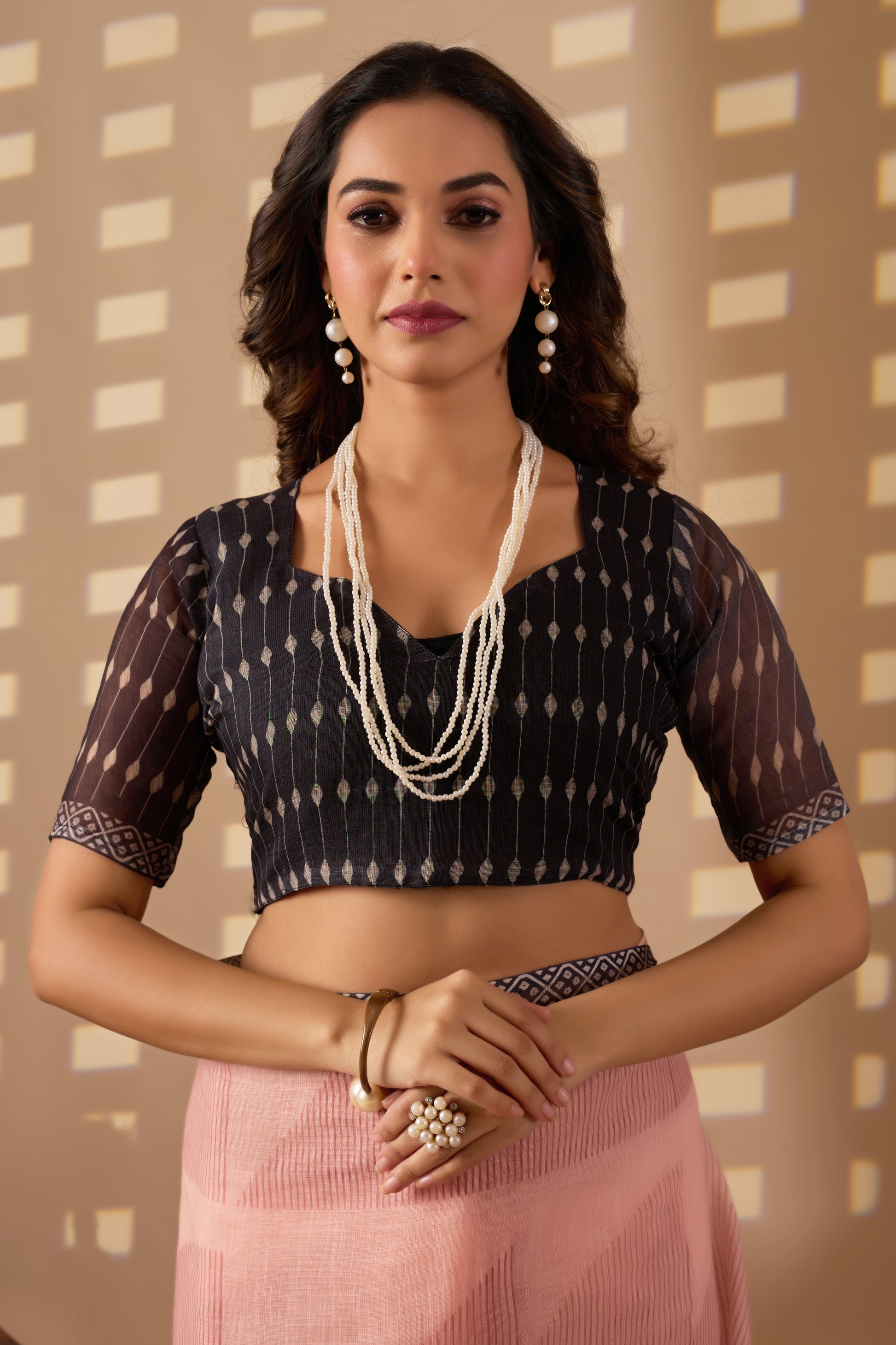 The digital print mix of geometric and Indian motifs give a chic look and enhances the beauty of the saree.
