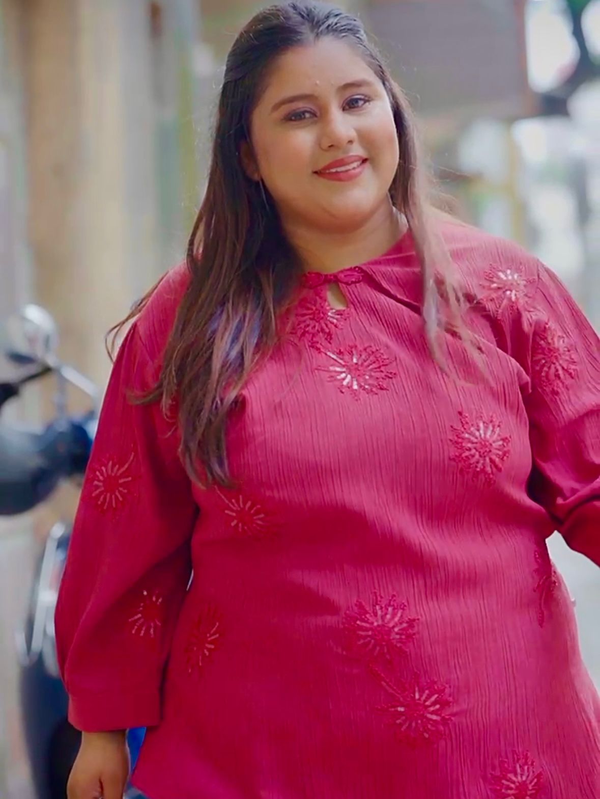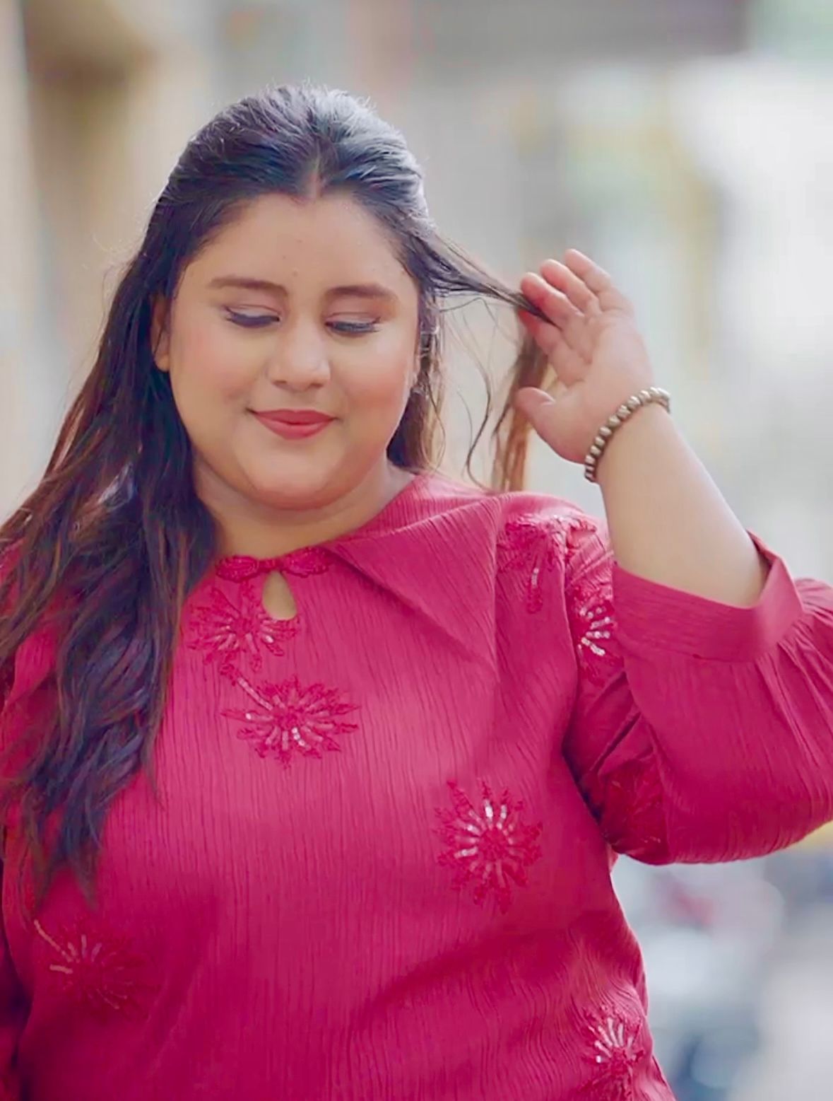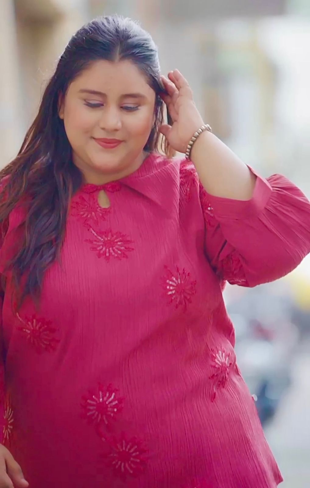 * Fabric: Made from a premium crinkle rayon, this set offers a wonderfully soft, textured feel that drapes beautifully. The fabric is lightweight and breathable, ensuring you stay comfortable all day long.
