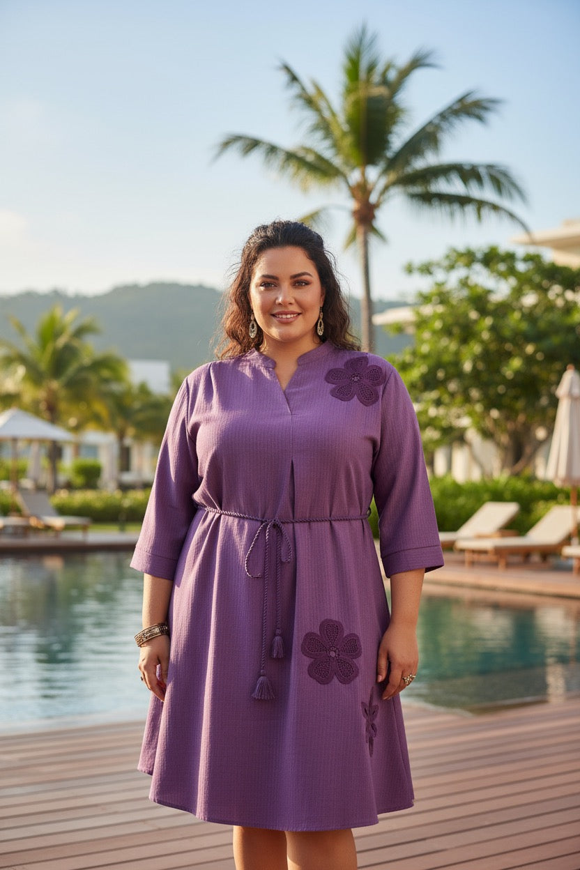 Step into a world of sophisticated charm with our stylish midi dress, perfectly designed for the modern woman who balances professional life with social outings. Whether you're commanding the boardroom or enjoying a weekend brunch, this dress in a stunning purple hue ensures you do it with grace and confidence.