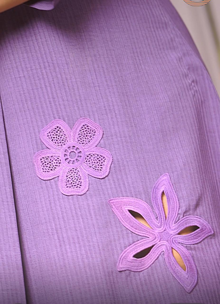 * Embroidery: The dress is a canvas of delicate artistry. It features a beautifully embedded flower embroidery patch on the shoulder for a pop of elegance, and an intricate cutwork flower patch at the bottom hem, adding a unique and high-fashion finish.