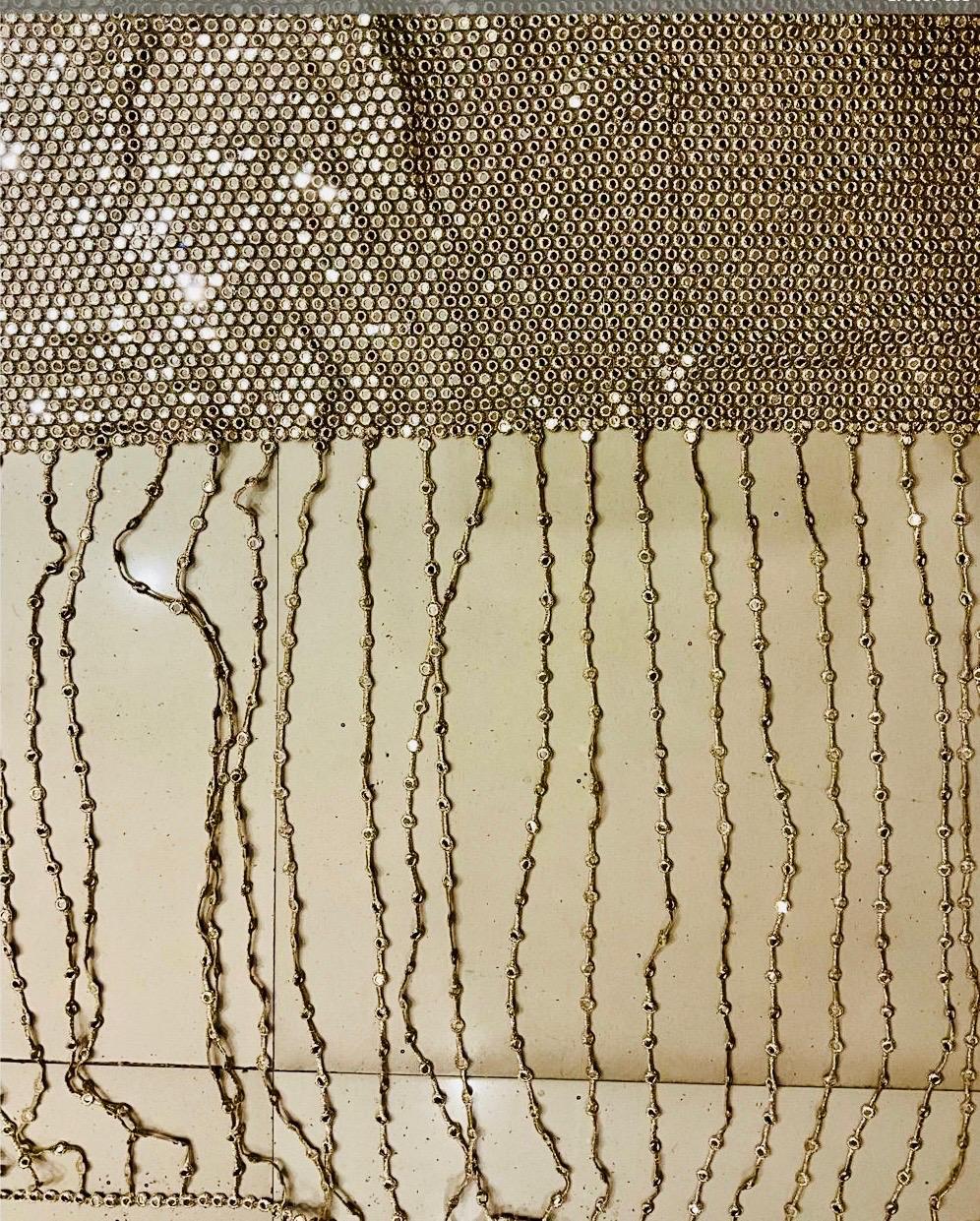 The standout feature of this fabric is the dramatic cascading mirror-strings, which transition into elegant tassels. This versatile design allows you to experiment with movement, shimmer, and structure, making it a must-have for high-fashion D2C brands and bespoke bridal wardrobes.