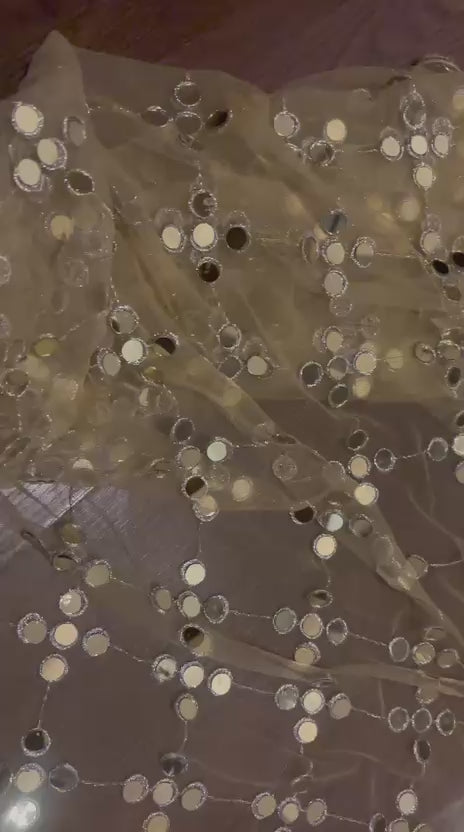 Add instant glamour to your ethnic wardrobe with this beautifully crafted Real Mirror Sheesh Dupatta. Designed on a soft net base, it features intricate hand-applied mirror (sheesh) work that creates a stunning shimmer effect. Finished with an elegant border on all four sides, this dupatta drapes effortlessly and elevates any lehenga, suit, or festive ensemble.